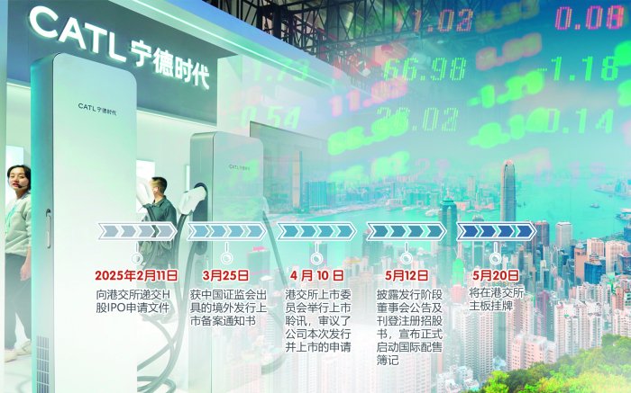 宁德时代于2025年2月11日正式向港交所递交上市申请文件,3月25日获中国证监会出具的境外发行上市备案通知书,创近年境外发行备案最快纪录。按照5月20日上市计算,宁德时代从申报到上市仅用3个多月。宁德时代表示,在当前环境下,公司实现接近A股价格的高位定价、超200亿港元的基石投资者认购,及在极短时间内完成上市流程,体现全球投资者对于宁德时代及全球新能源产业的价值认可。